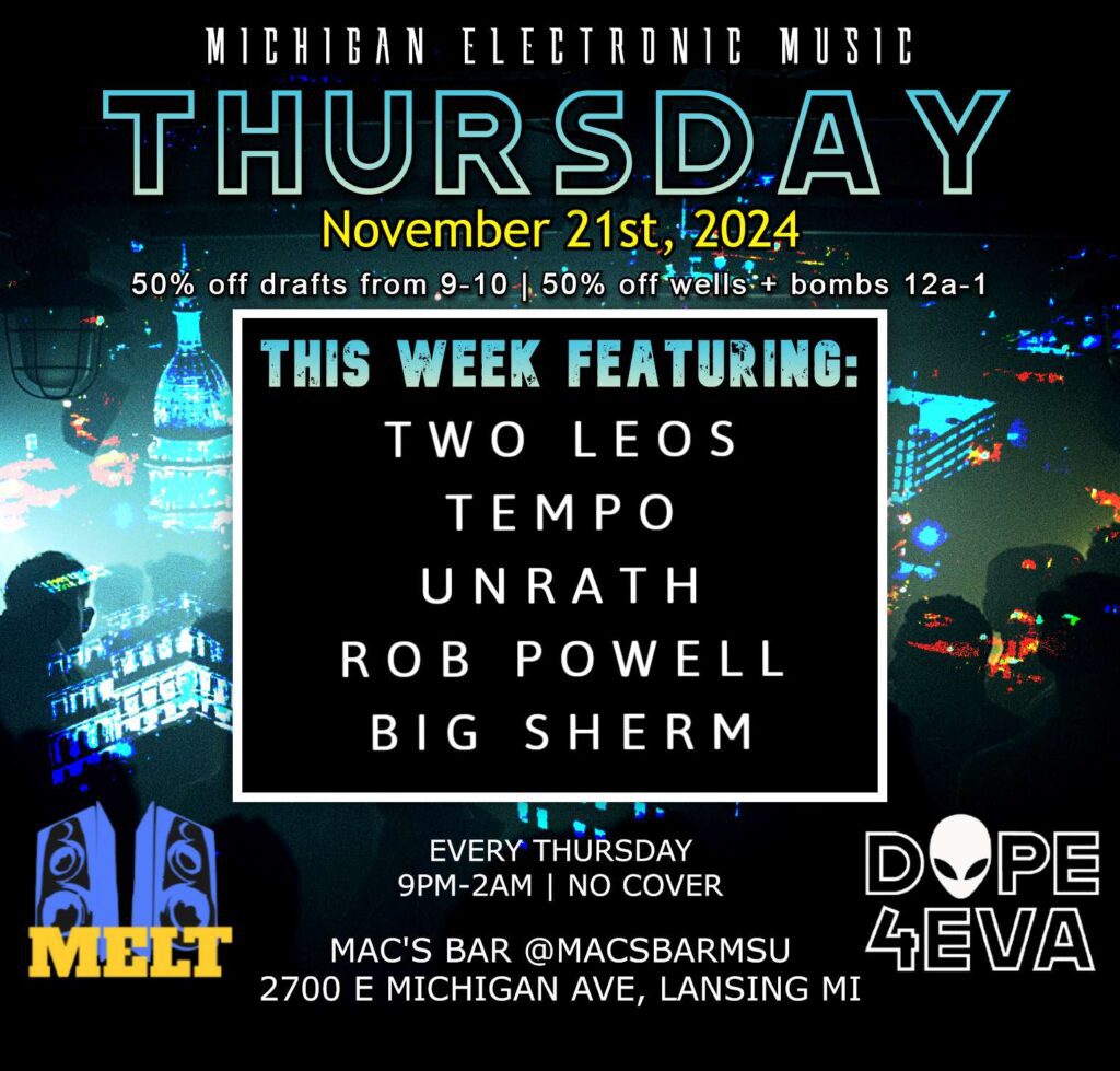 MELT Thursdays ran from Nov 2023 to Nov 2025 with the last show on 11/28/25. This page will memorialize the night and flyers 4EVA.