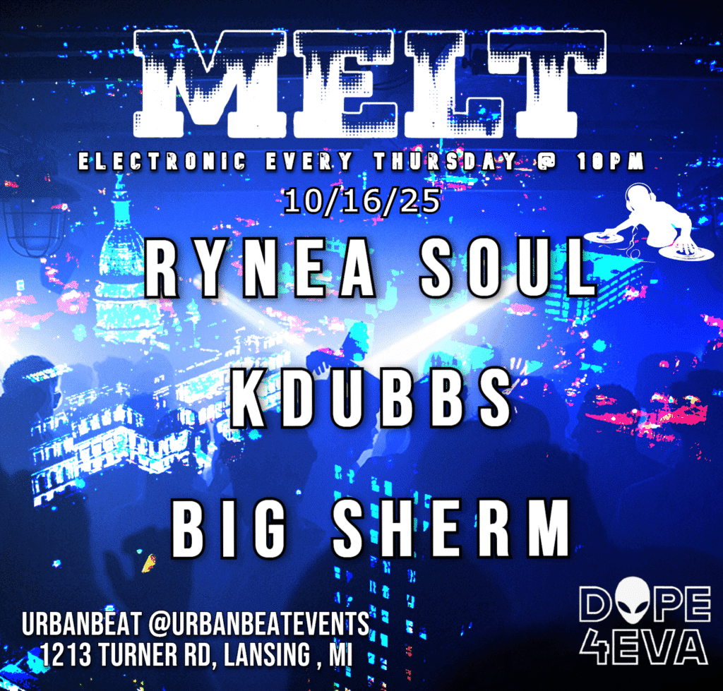 Every Thursday is DOPE4EVA at UrbanBeat! Featuring Mid-Michigan’s finest DJs, musicians, and electronic artists, curated weekly by D4E & Big Sherm.